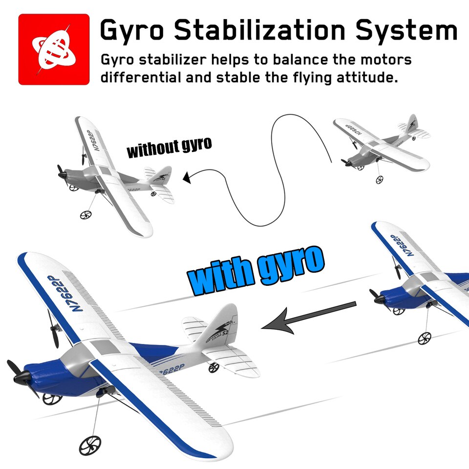*The remote control airplane equipped with gyro stabilization system which makes it fly stably even in the breeze.